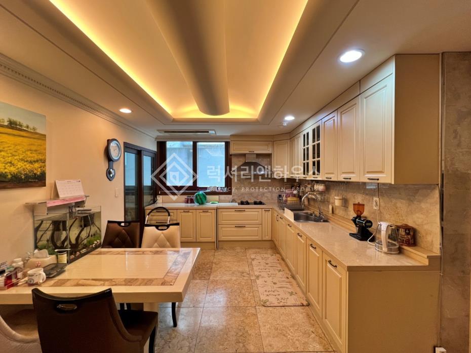 - 천연대리석과 수입 고급 마감재들을 사용해 럭셔리한 인테리어가 돋보이는 집입니다.