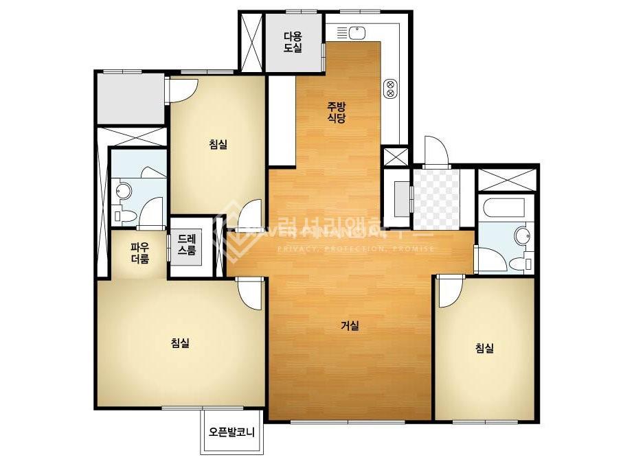 | 전용면적 | 85 m2 (25.70 평) | 방 / 화장실수 | 3개 / 2개 | ||