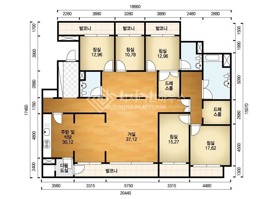 공급/전용면적 : 290.11㎡(87.75평)/244.92㎡(74.08평)